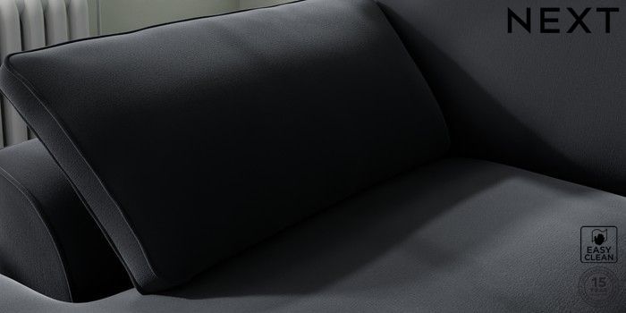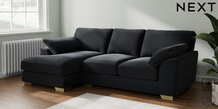 7.3.1 Buy Stamford Grand Relaxed Sit Medium Sofa Chaise - Left Hand Plush Velvet Easy Clean Charcoal Grey Large Square Angle - Brushed Brass from the Next UK online shop Click here to use our accessible website