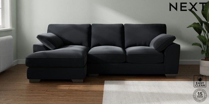 7.3.1 Buy Stamford Grand Relaxed Sit Medium Sofa Chaise - Left Hand Plush Velvet Easy Clean Charcoal Grey Large Square Angle - Gunmetal from the Next UK online shop Click here to use our accessible website