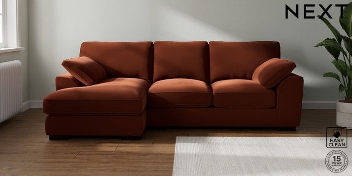7.3.1 Buy Stamford Grand Relaxed Sit Medium Sofa Chaise - Left Hand Plush Velvet Easy Clean Ginger Orange Large Square Angle - Dark from the Next UK online shop Click here to use our accessible website