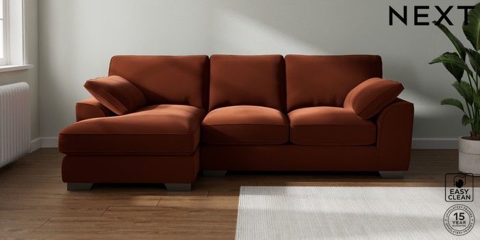 7.3.1 Buy Stamford Grand Relaxed Sit Medium Sofa Chaise - Left Hand Plush Velvet Easy Clean Ginger Orange Large Square Angle - Gunmetal from the Next UK online shop Click here to use our accessible website