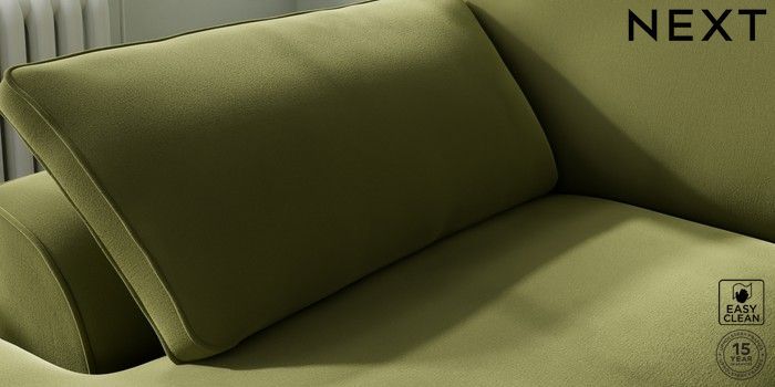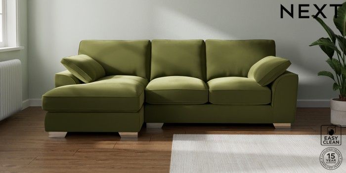 7.3.1 Buy Stamford Grand Relaxed Sit Medium Sofa Chaise - Left Hand Plush Velvet Easy Clean Mid Olive Green Large Square Angle - Chrome Metal from the Next UK online shop Click here to use our accessible website