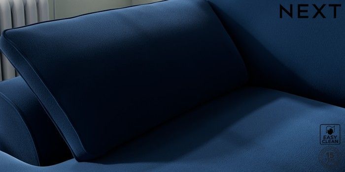 7.3.1 Buy Stamford Grand Relaxed Sit Medium Sofa Chaise - Left Hand Plush Velvet Easy Clean Navy Blue Large Square Angle - Brushed Brass from the Next UK online shop Click here to use our accessible website