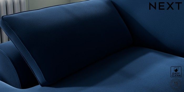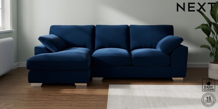 7.3.1 Buy Stamford Grand Relaxed Sit Medium Sofa Chaise - Left Hand Plush Velvet Easy Clean Navy Blue Large Square Angle - Chrome Metal from the Next UK online shop Click here to use our accessible website
