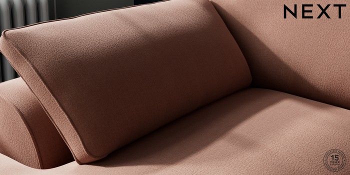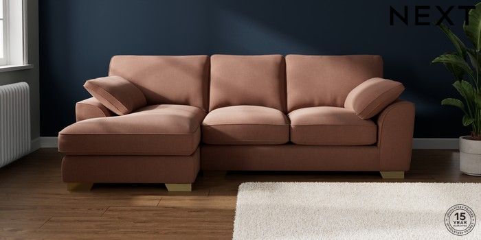 7.3.1 Buy Stamford Grand Relaxed Sit Medium Sofa Chaise - Left Hand Relaxed Linen Look Light Rust Brown Large Square Angle - Brushed Brass from the Next UK online shop