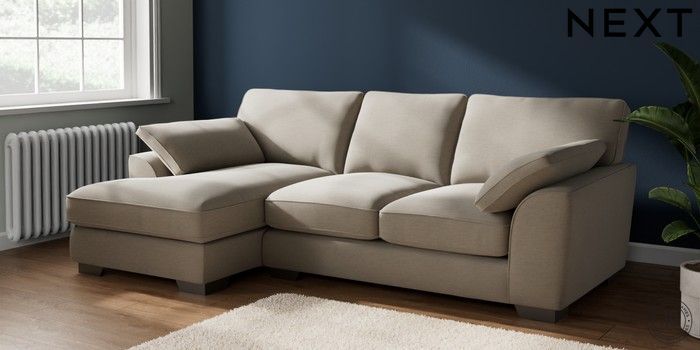 7.3.1 Buy Stamford Grand Relaxed Sit Medium Sofa Chaise - Left Hand Ripple Chenille Light Natural Large Square Angle - Gunmetal from the Next UK online shop Click here to use our accessible website