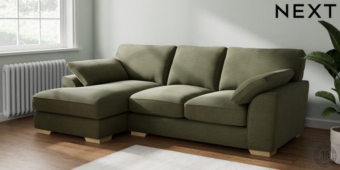 7.2.10 Buy Stamford Grand Relaxed Sit Medium Sofa Chaise - Left Hand Ripple Chenille Mid Moss Green Large Square Angle - Light from the Next UK online shop Click here to use our accessible website