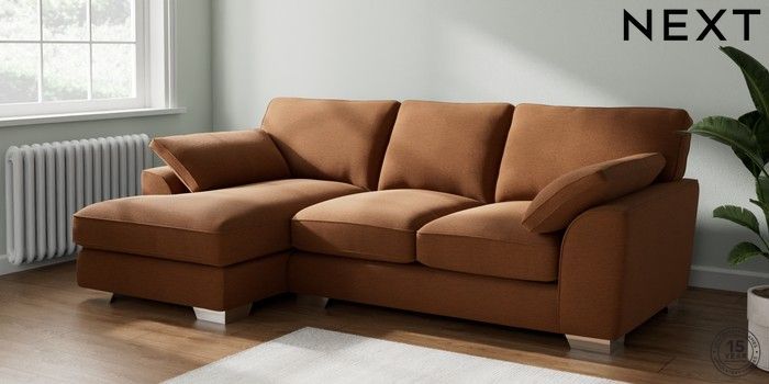 7.2.10 Buy Stamford Grand Relaxed Sit Medium Sofa Chaise - Left Hand Ripple Chenille Mid Rust Brown Large Square Angle - Chrome Metal from the Next UK online shop Click here to use our accessible website