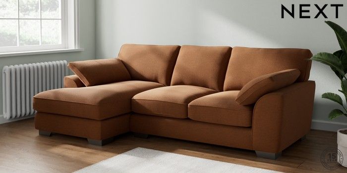 7.2.10 Buy Stamford Grand Relaxed Sit Medium Sofa Chaise - Left Hand Ripple Chenille Mid Rust Brown Large Square Angle - Gunmetal from the Next UK online shop Click here to use our accessible website