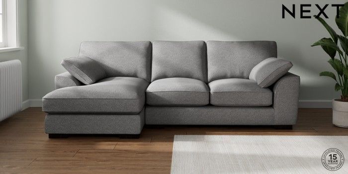 6.12.1 Buy Stamford Grand Relaxed Sit Medium Sofa Chaise - Left Hand Studio Chenille Mid Grey Large Square Angle - Dark from the Next UK online shop Click here to use our accessible website