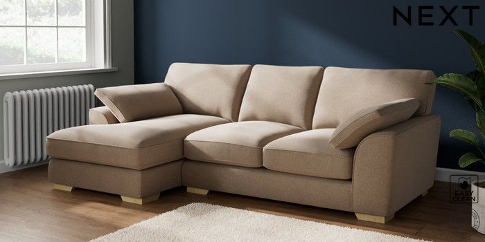 7.3.1 Buy Stamford Grand Relaxed Sit Medium Sofa Chaise - Left Hand Tweedy Blend Easy Clean Light Dove Natural Large Square Angle - Light from the Next UK online shop Click here to use our accessible website