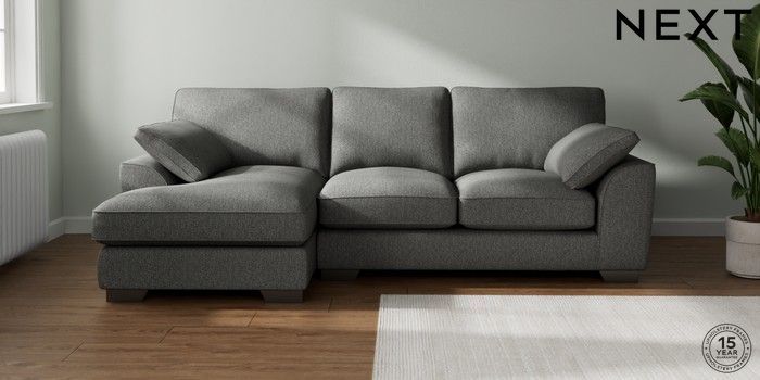 7.3.1 Buy Stamford Grand Relaxed Sit Medium Sofa Chaise - Left Hand Tweedy Chenille Dark Grey Large Square Angle - Gunmetal from the Next UK online shop Click here to use our accessible website