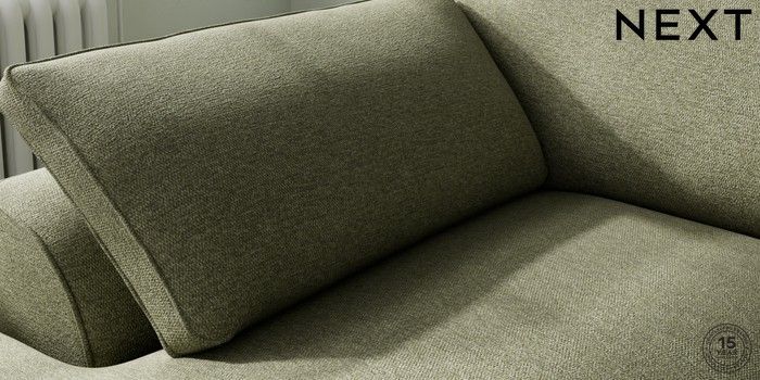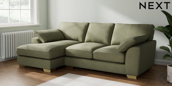 7.3.1 Buy Stamford Grand Relaxed Sit Medium Sofa Chaise - Left Hand Tweedy Chenille Mid Moss Green Large Square Angle - Brushed Brass from the Next UK online shop Click here to use our accessible website