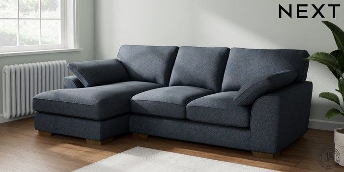 7.2.10 Buy Stamford Grand Relaxed Sit Medium Sofa Chaise - Left Hand Tweedy Chenille Navy Blue Large Square Angle - Mid from the Next UK online shop Click here to use our accessible website