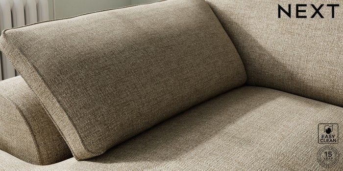 7.3.1 Buy Stamford Grand Relaxed Sit Medium Sofa Chaise - Left Hand Woven Chenille Easy Clean Mid Natural Large Square Angle - Gunmetal from the Next UK online shop Click here to use our accessible website