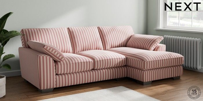 7.2.10 Buy Stamford Grand Relaxed Sit Medium Sofa Chaise - Right Hand Bold Chenille Stripe Dark Pink Large Square Angle - Gunmetal from the Next UK online shop Click here to use our accessible website