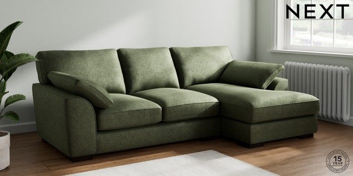 7.3.1 Buy Stamford Grand Relaxed Sit Medium Sofa Chaise - Right Hand Boucle Chenille Dark Moss Green Large Square Angle - Dark from the Next UK online shop Click here to use our accessible website