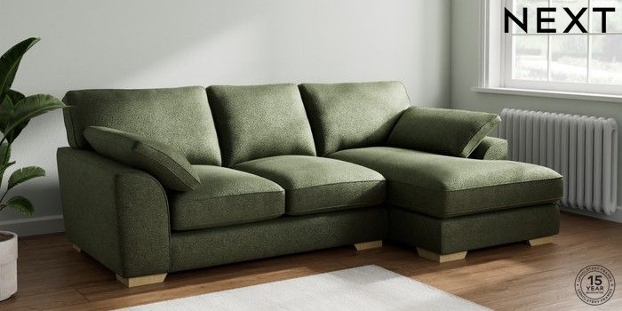 7.2.10 Buy Stamford Grand Relaxed Sit Medium Sofa Chaise - Right Hand Boucle Chenille Dark Moss Green Large Square Angle - Light from the Next UK online shop Click here to use our accessible website