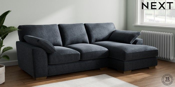 7.2.10 Buy Stamford Grand Relaxed Sit Medium Sofa Chaise - Right Hand Boucle Chenille Dark Slate Blue Large Square Angle - Mid from the Next UK online shop Click here to use our accessible website
