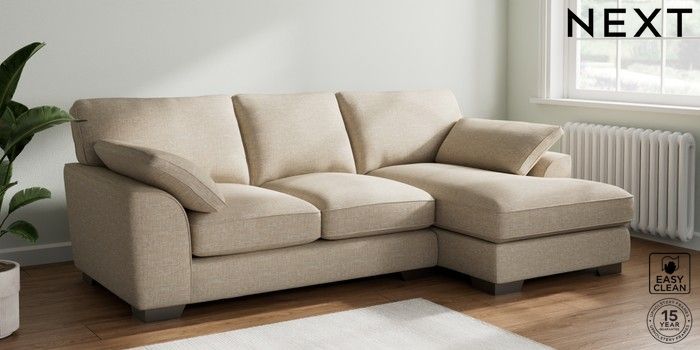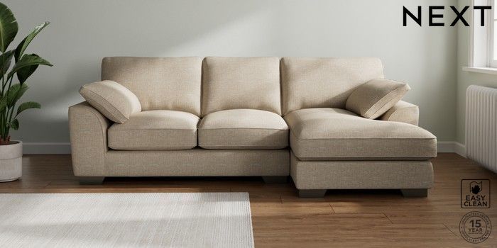 7.3.1 Buy Stamford Grand Relaxed Sit Medium Sofa Chaise - Right Hand Boucle Weave Easy Clean Dark Natural Large Square Angle - Gunmetal from the Next UK online shop Click here to use our accessible website