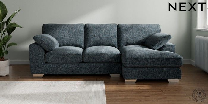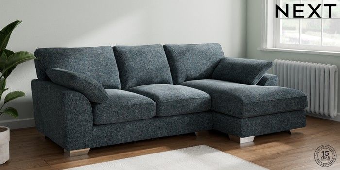 7.3.1 Buy Stamford Grand Relaxed Sit Medium Sofa Chaise - Right Hand Chunky Chenille Dark Navy Blue Large Square Angle - Chrome Metal from the Next UK online shop Click here to use our accessible website