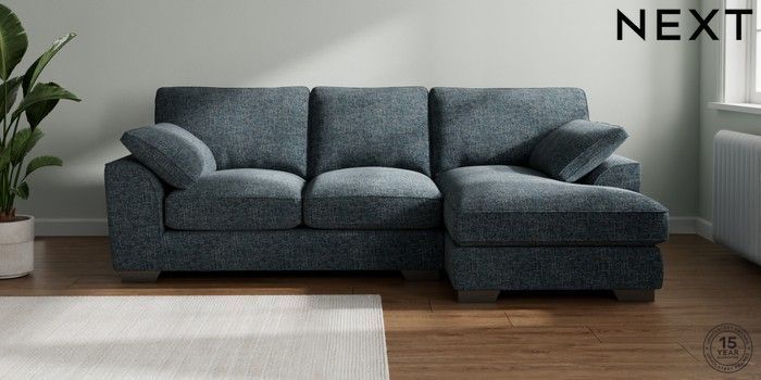 7.3.1 Buy Stamford Grand Relaxed Sit Medium Sofa Chaise - Right Hand Chunky Chenille Dark Navy Blue Large Square Angle - Gunmetal from the Next UK online shop Click here to use our accessible website