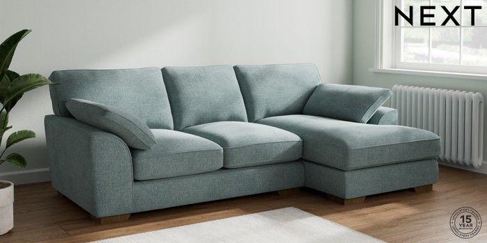 7.2.10 Buy Stamford Grand Relaxed Sit Medium Sofa Chaise - Right Hand Chunky Chenille Light Teal Green Large Square Angle - Mid from the Next UK online shop Click here to use our accessible website