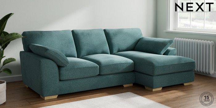 7.2.10 Buy Stamford Grand Relaxed Sit Medium Sofa Chaise - Right Hand Chunky Chenille Mid Teal Green Large Square Angle - Light from the Next UK online shop Click here to use our accessible website