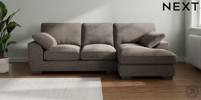 7.3.1 Buy Stamford Grand Relaxed Sit Medium Sofa Chaise - Right Hand Chunky Chenille Mink Brown Large Square Angle - Gunmetal from the Next UK online shop Click here to use our accessible website