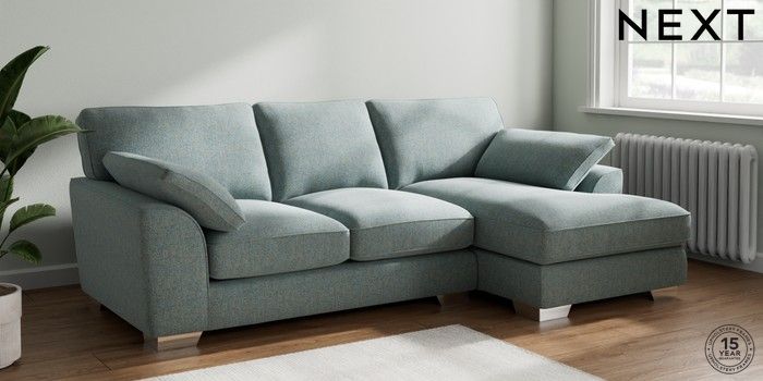 7.3.1 Buy Stamford Grand Relaxed Sit Medium Sofa Chaise - Right Hand Chunky Marl Mid Blue Large Square Angle - Chrome Metal from the Next UK online shop Click here to use our accessible website