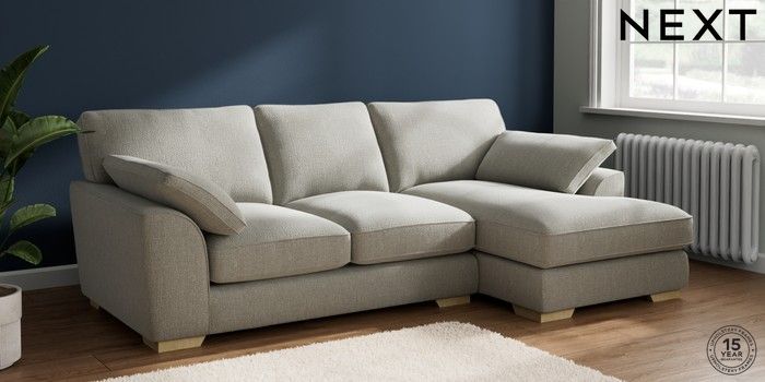 7.2.10 Buy Stamford Grand Relaxed Sit Medium Sofa Chaise - Right Hand Chunky Texture Dove Large Square Angle - Light from the Next UK online shop Click here to use our accessible website