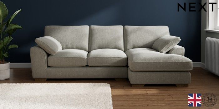6.12.1 Buy Stamford Grand Relaxed Sit Medium Sofa Chaise - Right Hand Chunky Texture Dove Large Square Angle - Mid from the Next UK online shop Click here to use our accessible website