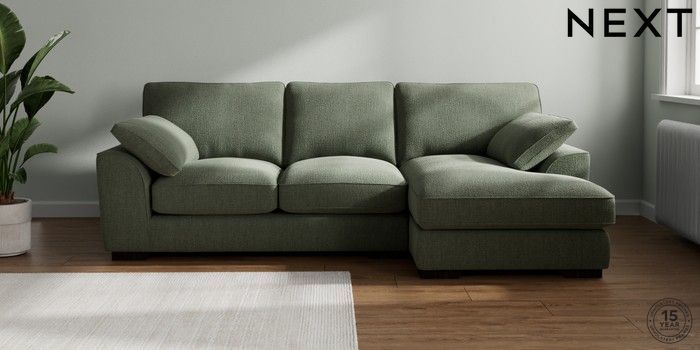 7.3.1 Buy Stamford Grand Relaxed Sit Medium Sofa Chaise - Right Hand Chunky Texture Mid Forest Green Large Square Angle - Dark from the Next UK online shop