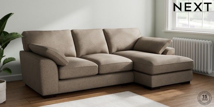 7.2.10 Buy Stamford Grand Relaxed Sit Medium Sofa Chaise - Right Hand Chunky Weave Dark Natural Large Square Angle - Dark from the Next UK online shop Click here to use our accessible website