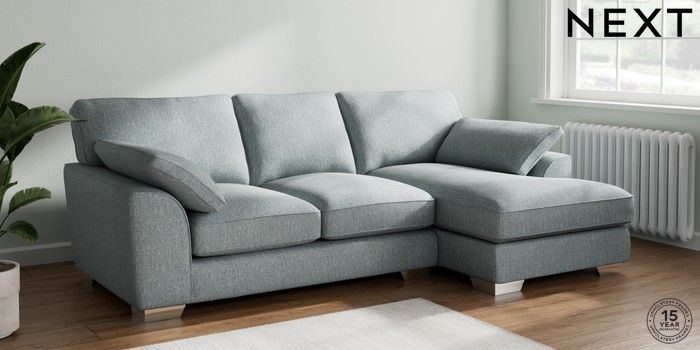 7.3.1 Buy Stamford Grand Relaxed Sit Medium Sofa Chaise - Right Hand Chunky Weave Mid Blue Large Square Angle - Chrome Metal from the Next UK online shop Click here to use our accessible website