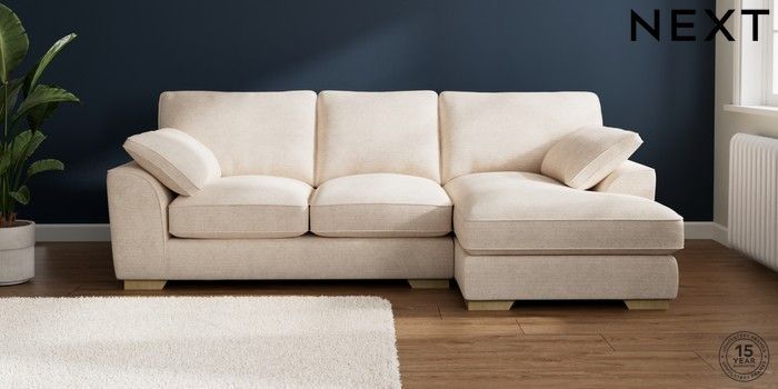 7.3.1 Buy Stamford Grand Relaxed Sit Medium Sofa Chaise - Right Hand Boucle Chenille Oyster Large Square Angle - Light from the Next UK online shop
