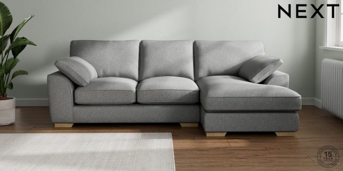 7.3.1 Buy Stamford Grand Relaxed Sit Medium Sofa Chaise - Right Hand Chunky Weave Mid Grey Large Square Angle - Light from the Next UK online shop
