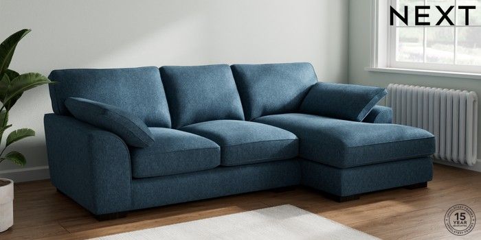 7.3.1 Buy Stamford Grand Relaxed Sit Medium Sofa Chaise - Right Hand Cotswold Chenille Dark Blue Large Square Angle - Dark from the Next UK online shop Click here to use our accessible website