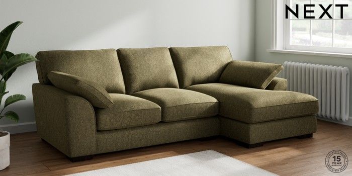 7.2.10 Buy Stamford Grand Relaxed Sit Medium Sofa Chaise - Right Hand Cotswold Chenille Dark Green Large Square Angle - Dark from the Next UK online shop Click here to use our accessible website