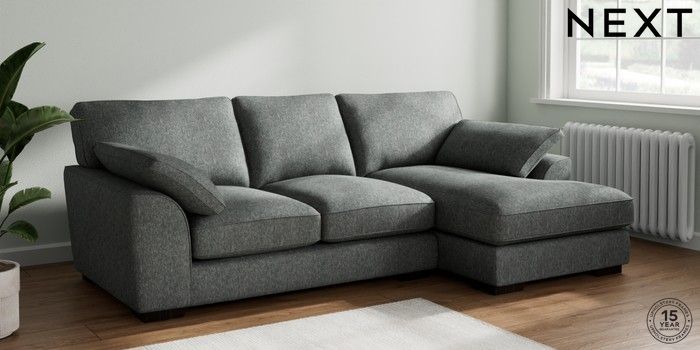 7.2.10 Buy Stamford Grand Relaxed Sit Medium Sofa Chaise - Right Hand Cotswold Chenille Dark Grey Large Square Angle - Dark from the Next UK online shop Click here to use our accessible website