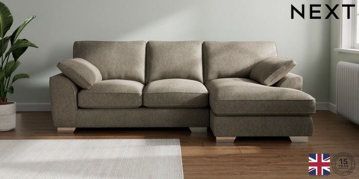 7.0.3 Buy Stamford Grand Relaxed Sit Medium Sofa Chaise - Right Hand Cotswold Chenille Mid Mink Brown Large Square Angle - Chrome Metal from the Next UK online shop Click here to use our accessible website
