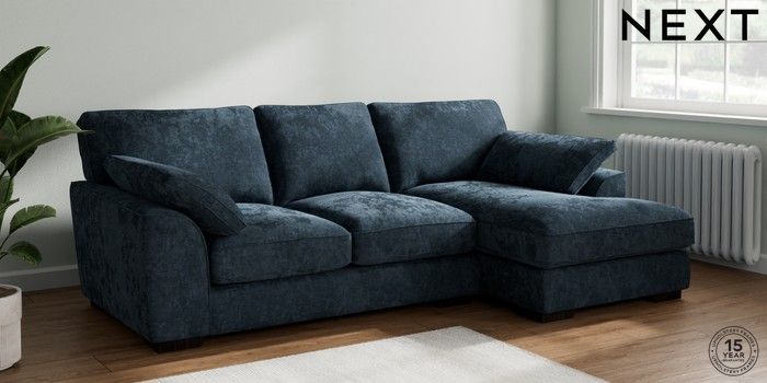 7.2.10 Buy Stamford Grand Relaxed Sit Medium Sofa Chaise - Right Hand Distressed Velour Midnight Blue Large Square Angle - Dark from the Next UK online shop Click here to use our accessible website