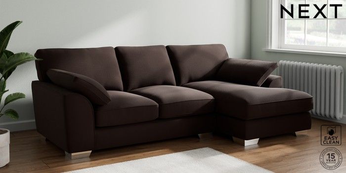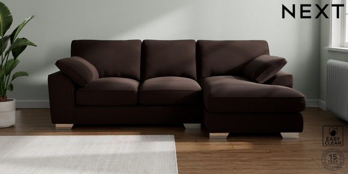 7.3.1 Buy Stamford Grand Relaxed Sit Medium Sofa Chaise - Right Hand Fine Chenille Easy Clean Chocolate Brown Large Square Angle - Chrome Metal from the Next UK online shop Click here to use our accessible website