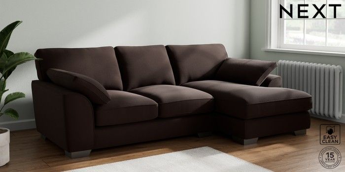 7.3.1 Buy Stamford Grand Relaxed Sit Medium Sofa Chaise - Right Hand Fine Chenille Easy Clean Chocolate Brown Large Square Angle - Gunmetal from the Next UK online shop Click here to use our accessible website
