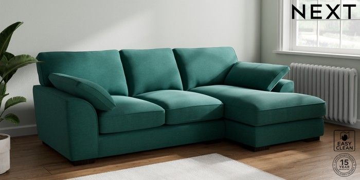 7.3.1 Buy Stamford Grand Relaxed Sit Medium Sofa Chaise - Right Hand Fine Chenille Easy Clean Dark Juniper Green Large Square Angle - Dark from the Next UK online shop Click here to use our accessible website