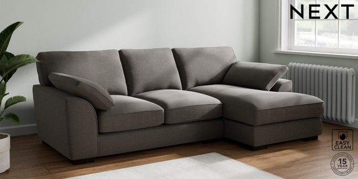 7.3.1 Buy Stamford Grand Relaxed Sit Medium Sofa Chaise - Right Hand Fine Chenille Easy Clean Dark Smoke Grey Large Square Angle - Dark from the Next UK online shop Click here to use our accessible website