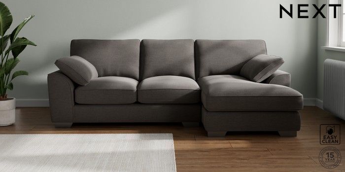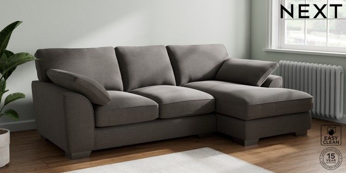 7.3.1 Buy Stamford Grand Relaxed Sit Medium Sofa Chaise - Right Hand Fine Chenille Easy Clean Dark Smoke Grey Large Square Angle - Gunmetal from the Next UK online shop Click here to use our accessible website