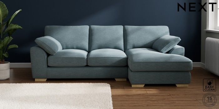 7.3.8 Buy Stamford Grand Relaxed Sit Medium Sofa Chaise - Right Hand Fine Chenille Easy Clean Mid Blue Large Square Angle - Light from the Next UK online shop