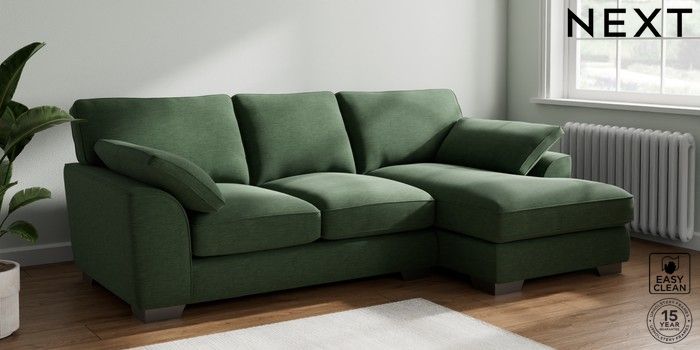 7.3.1 Buy Stamford Grand Relaxed Sit Medium Sofa Chaise - Right Hand Fine Chenille Easy Clean Mid Khaki Green Large Square Angle - Gunmetal from the Next UK online shop Click here to use our accessible website