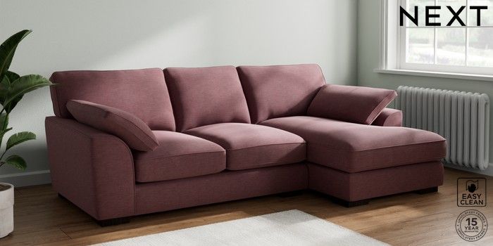7.3.1 Buy Stamford Grand Relaxed Sit Medium Sofa Chaise - Right Hand Fine Chenille Easy Clean Mid Mulberry Purple Large Square Angle - Dark from the Next UK online shop Click here to use our accessible website