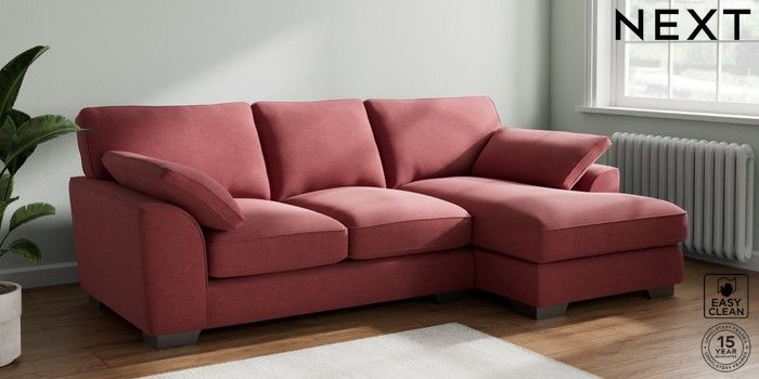 7.3.1 Buy Stamford Grand Relaxed Sit Medium Sofa Chaise - Right Hand Fine Chenille Easy Clean Mid Pink Large Square Angle - Gunmetal from the Next UK online shop Click here to use our accessible website